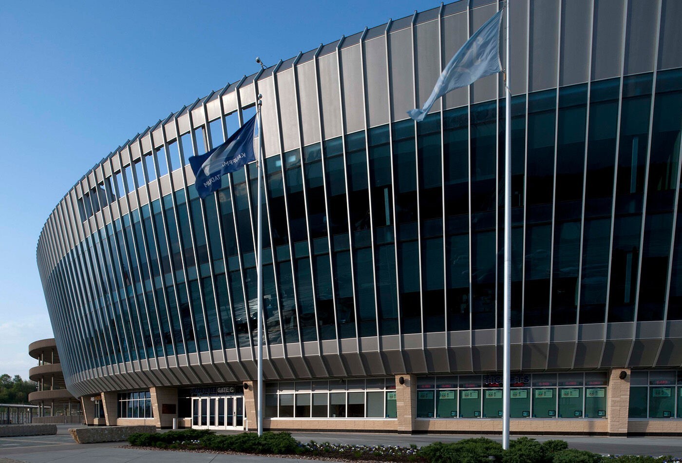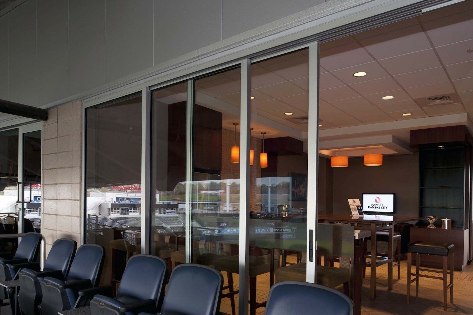 Kawneer was involved in the renovation of Kauffman Stadium, home to Major League Baseball’s Kansas City Royals and part of the Truman Sports Complex. Kawneer’s 1600 Wall System®1 Curtain Wall, entrances and sliding doors were installed throughout the stadium, including the Diamond Club, press boxes and broadcasting booth. The large glass curtain wall gives the building’s exterior facade a unique look, and sliding doors enable fans to open most of the suite fronts to the stadium itself.