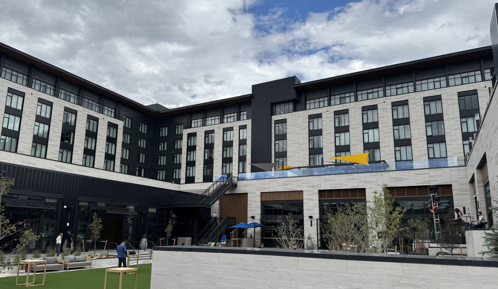 The project incorporates a wide range of Kawneer aluminum facade products to ensure occupant comfort, including curtain wall, storefront framing, entrances and operable windows. The facade includes tall glass spans achieved with 1600UT System™1 Curtain Wall and MetroView® FG 501T Window Wall systems, providing natural daylight and visual connection with the surrounding campus and mountains. Additionally, each guest room features operable OptiQ® AA®5450 Series Windows integrated into the window wall system.