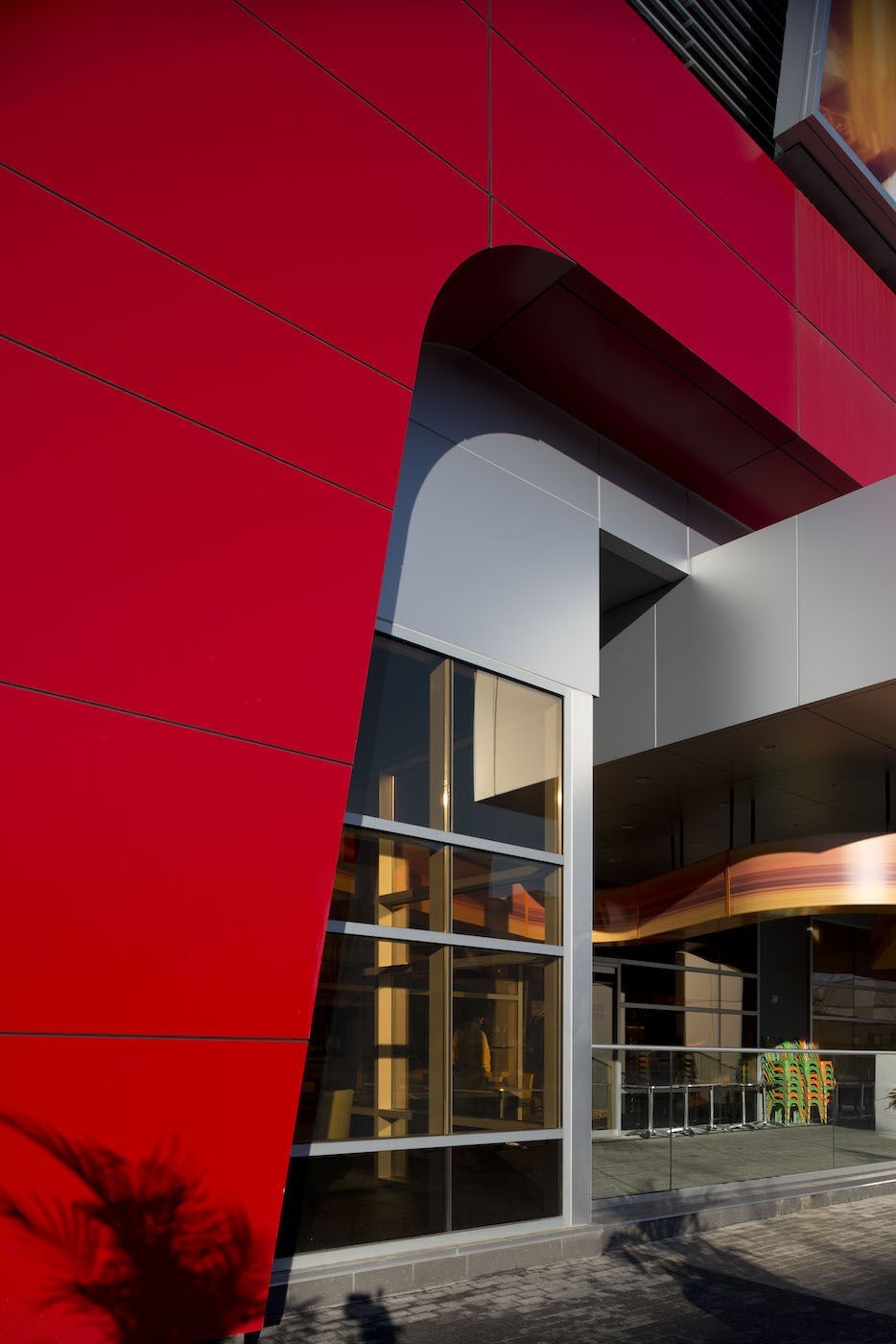 To provide the clean look of a glass curtain wall and maintain the durability, strength and beauty required, Kawneer’s curtain wall with structural silicone glazed vertical mullions were specified. Kawneer’s 1600UT System™1 Curtain Wall and 1600UT System™2 Curtain Wall were fabricated with short-back members just 3-¾” deep that were fastened directly to the concrete substrate. 190 Narrow Stile and 350 Medium Stile Entrances were used to withstand the heavy traffic flow and were outfitted with customized hardware and custom grid configurations.