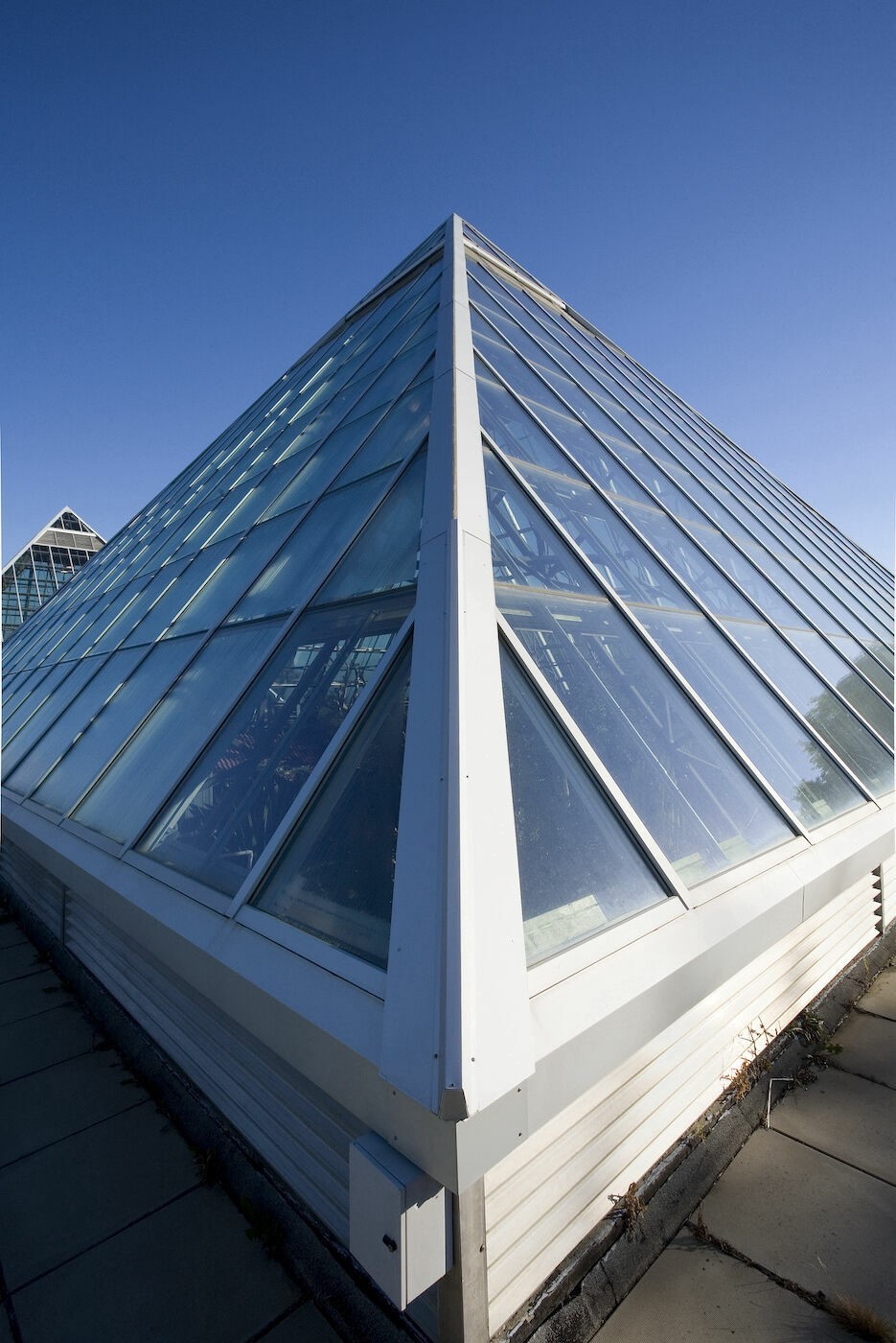 Muttart Conservatory needed renovations to respond to increased visitor traffic. Kawneer was part of the project that delivered a new main entrance, gift shop, café, outdoor spaces and improvements to existing spaces to provide new classrooms, administration and staff areas. Our 2000 Skylight created a sloped canopy for the entrance, delivering a flush grid appearance. Featuring an insulating thermal break at the exterior of the plane of glass, the skylight minimizes heat loss and condensation. The new entrance welcomes visitors to the facility, establishes axial circulation throughout the building and addresses the lack of visibility and sense of arrival at the Muttart.