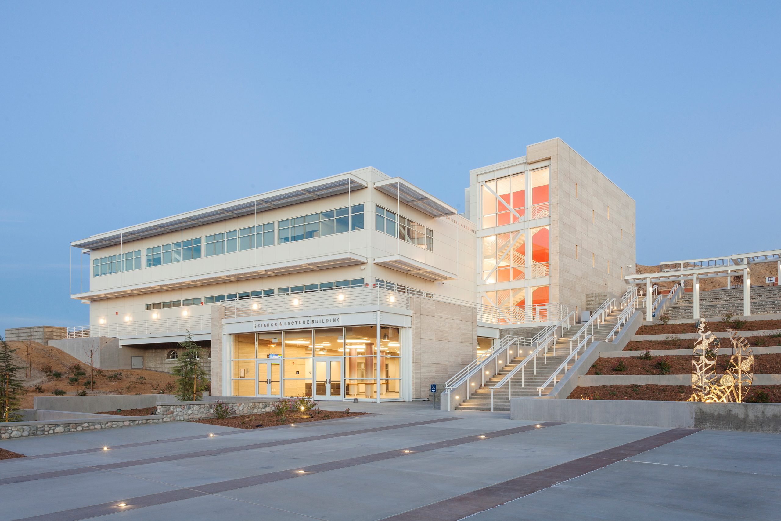 The four-story Don Takeda Science Center is a 55,000-square-foot building at College of the Canyons that features a two-story laboratory, three floors of classrooms and a student resource center. The building has four biology labs, three chemistry labs and a physics lab all offering teaching and learning spaces for students and faculty. The science center also houses three computer labs, study rooms, seven lecture halls and state of the art technology to help advance learning for the next generation.