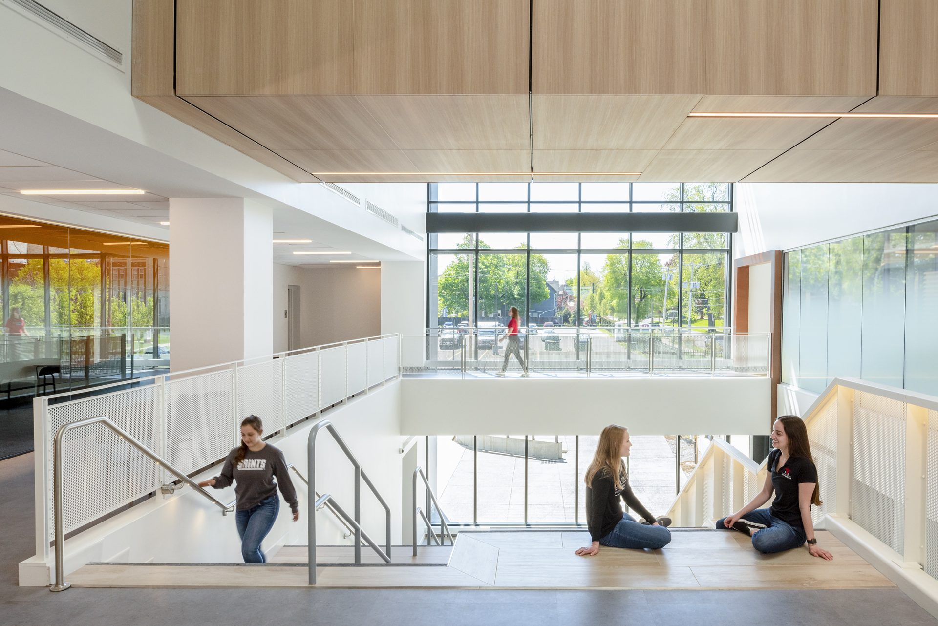 The D’Youville University Health Professions Hub’s exterior and interior features play a major part in the education and training of aspiring healthcare professionals. The Hub offers accessible quality medical care for the residents of the surrounding neighborhoods through an on-site clinic and street-facing pharmacy.