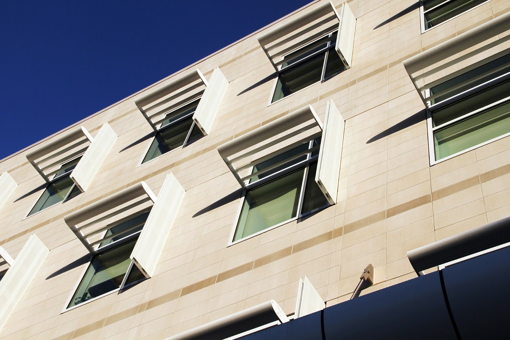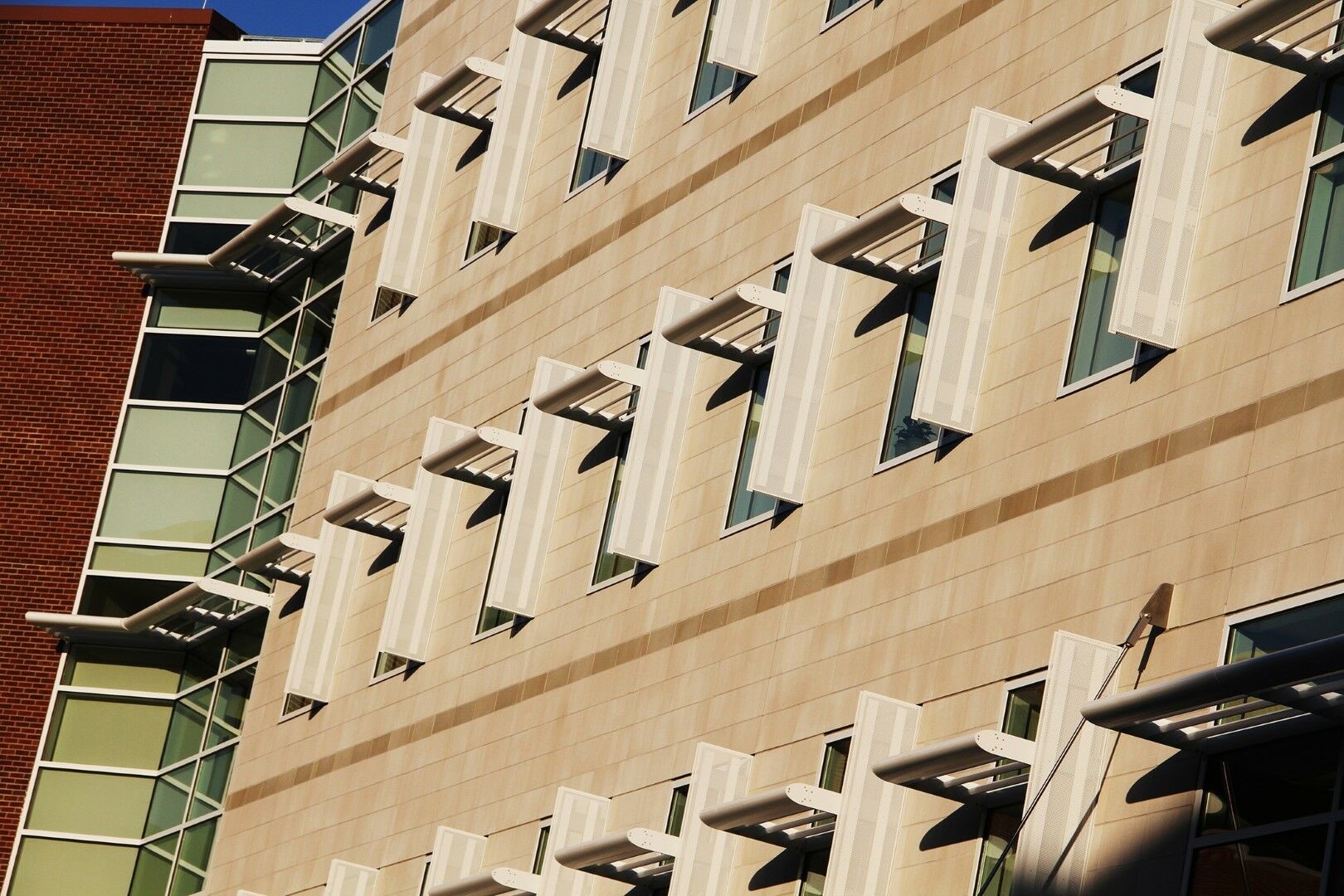 The new EVMS Education and Research Building expands the capacity and consolidates existing spaces for teaching, studying, student support and administrative workspaces. The project features Kawneer’s curtain wall and framing systems for optimum thermal performance, while our Versoleil® SunShade and InLighten® Light Shelf enhance the building’s energy efficiency. 500 Heavy Wall Entrances were used to accommodate the high traffic in and out of the building.