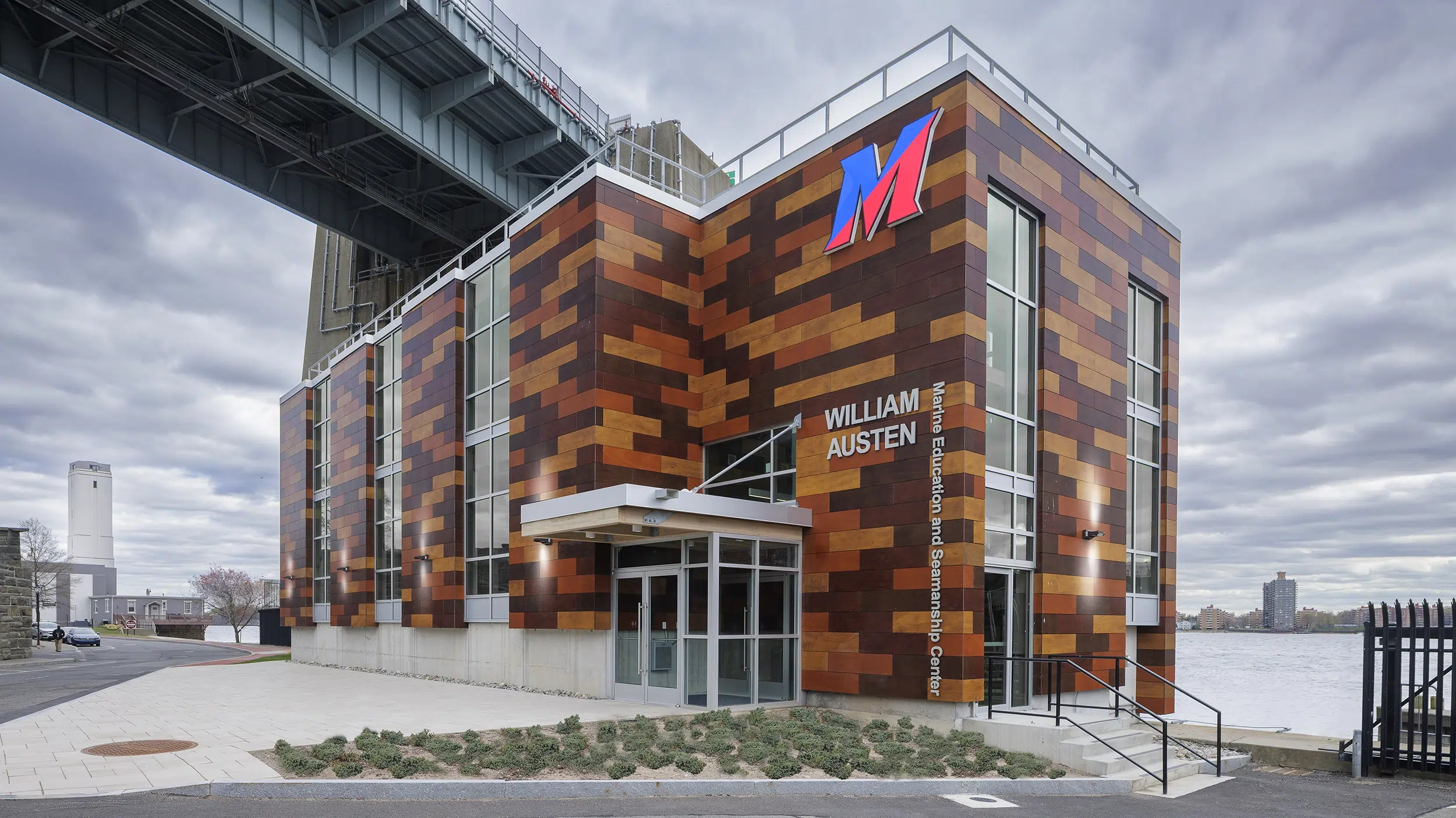 The William Austen Marine Education and Seamanship Center at SUNY Maritime College is a 2 1/2-story academic building located in the Bronx, New York. Designed with sustainability in mind, this all-electric building features a state-of-the-art wet science laboratory on the first floor. The second floor includes a classroom for the College’s Marine Transportation department. The design process focused on integrating advanced environmental technologies and maximizing the building’s unique waterfront location to enhance educational opportunities.