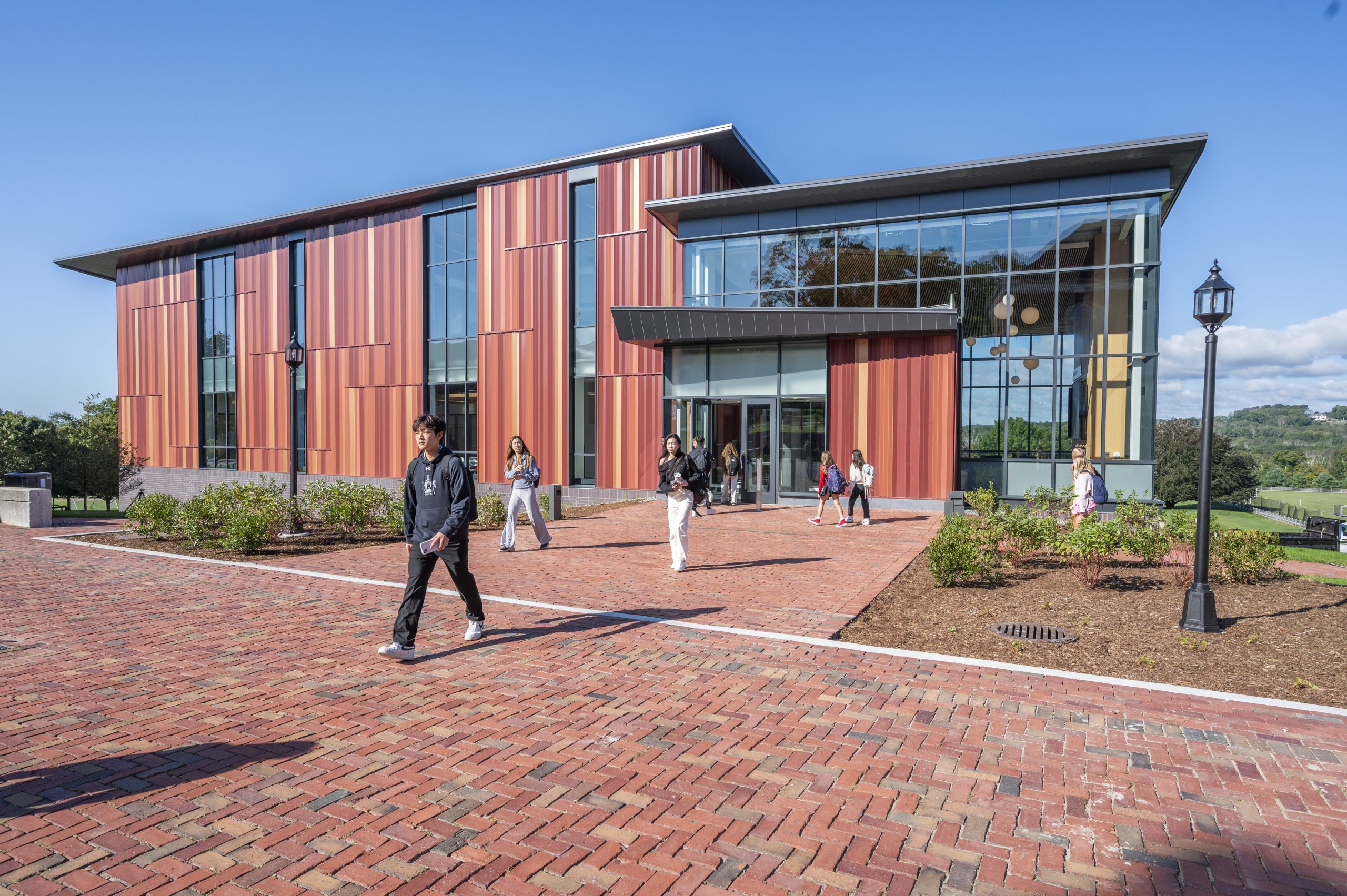 The VISTA (Venue for Innovation, Science, Technology and Academics) building at Pomfret School is a cutting-edge educational facility designed to enhance science and technology education for students. Located on the school’s main academic quad, the three-story building features advanced laboratories for various scientific disciplines and collaborative spaces for interdisciplinary projects. The building’s architectural design blends contemporary design with the historic character of the campus, creating a visually striking and functional space.
