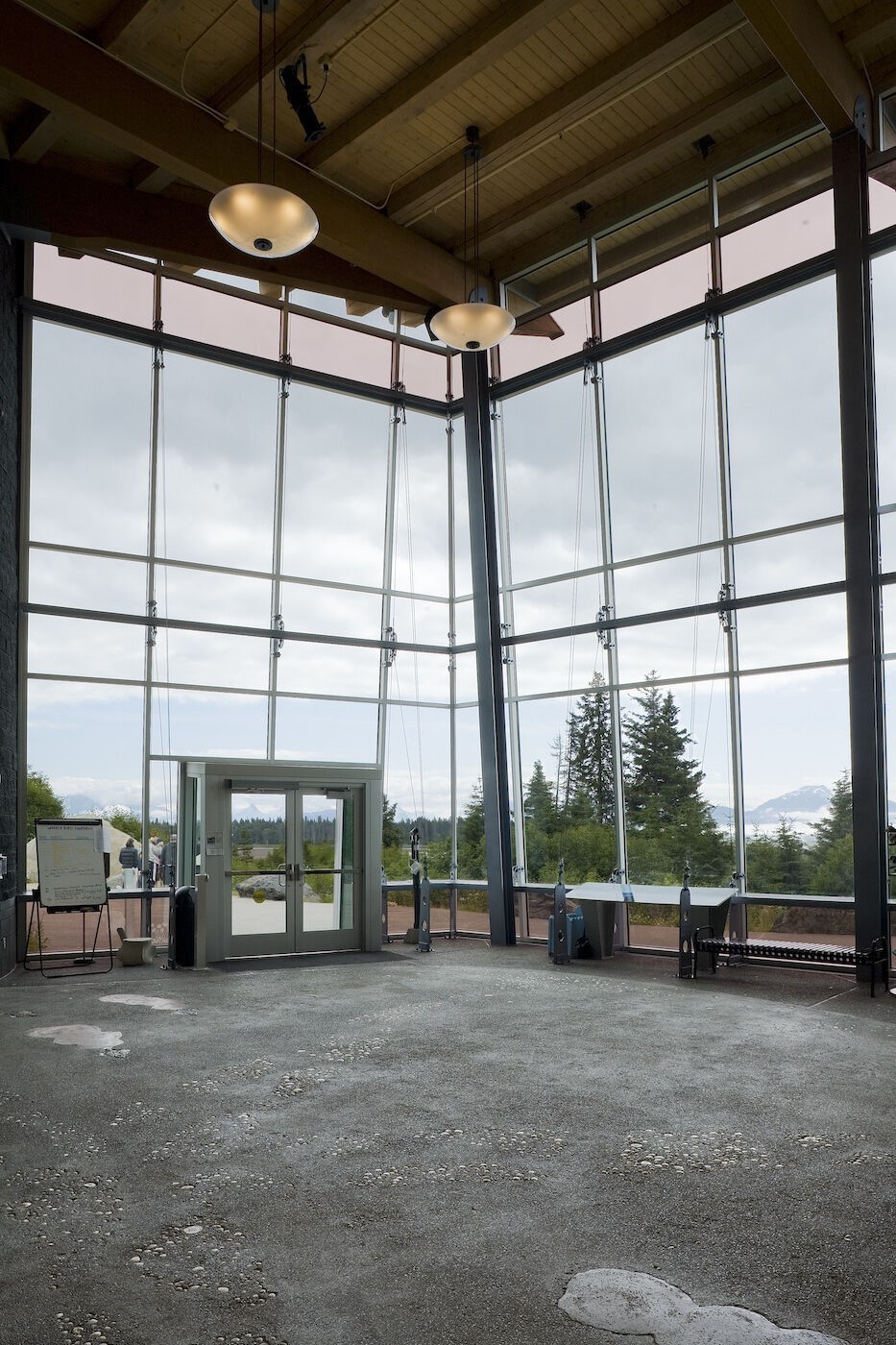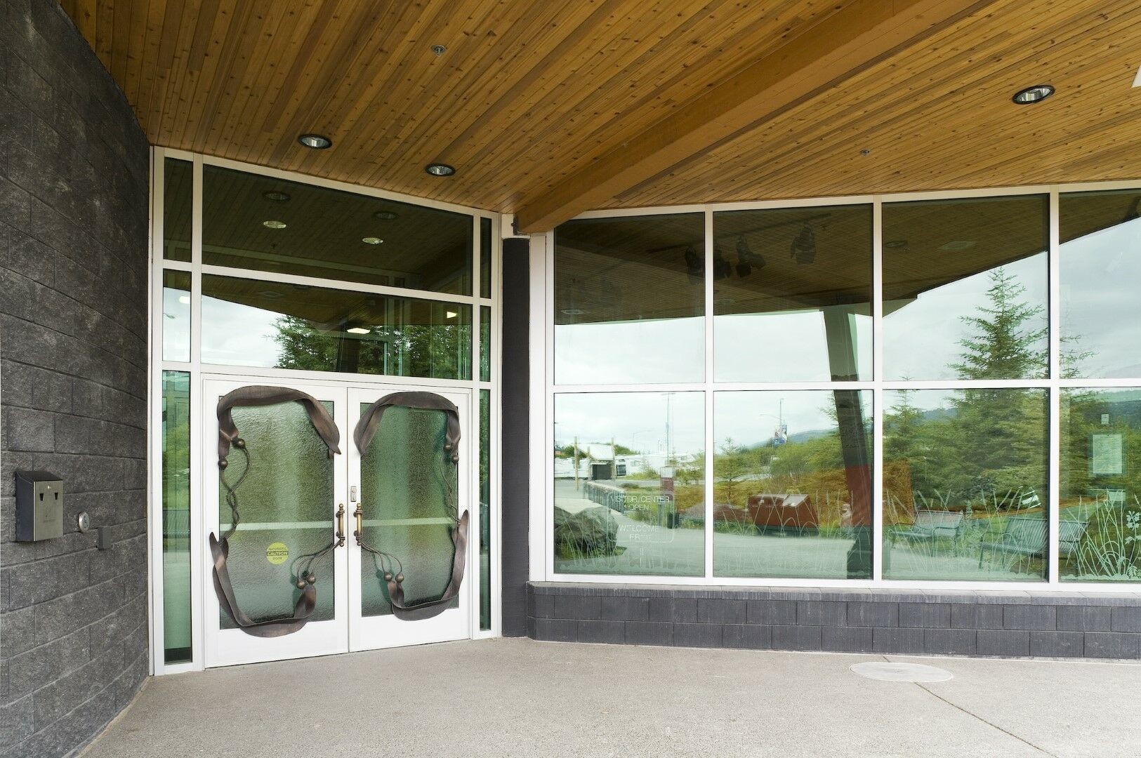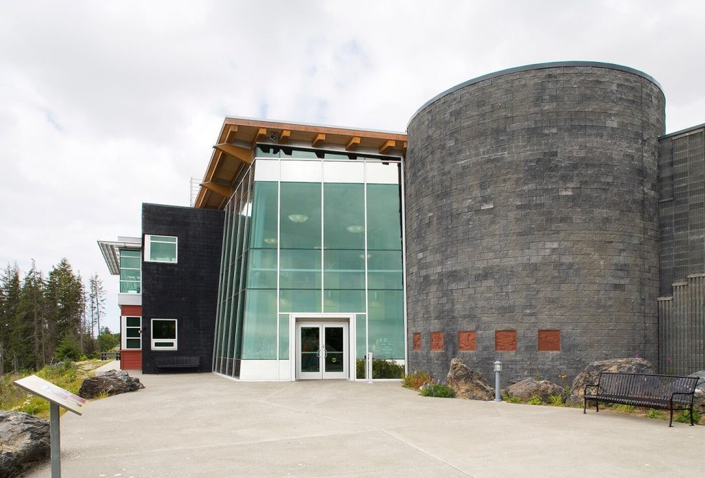 The Alaska Islands and Ocean Visitors Center features Kawneer’s 1600UT System™1 Curtain Wall, 1600UT System™2 Curtain Wall, 190/350/500 Standard Entrances, 8225TL Thermal Windows, Trifab® VersaGlaze® 450 Framing System with 2″ sightline, 1010 Sliding Mall Front and 512 Ventrow Thermal Ventilator.