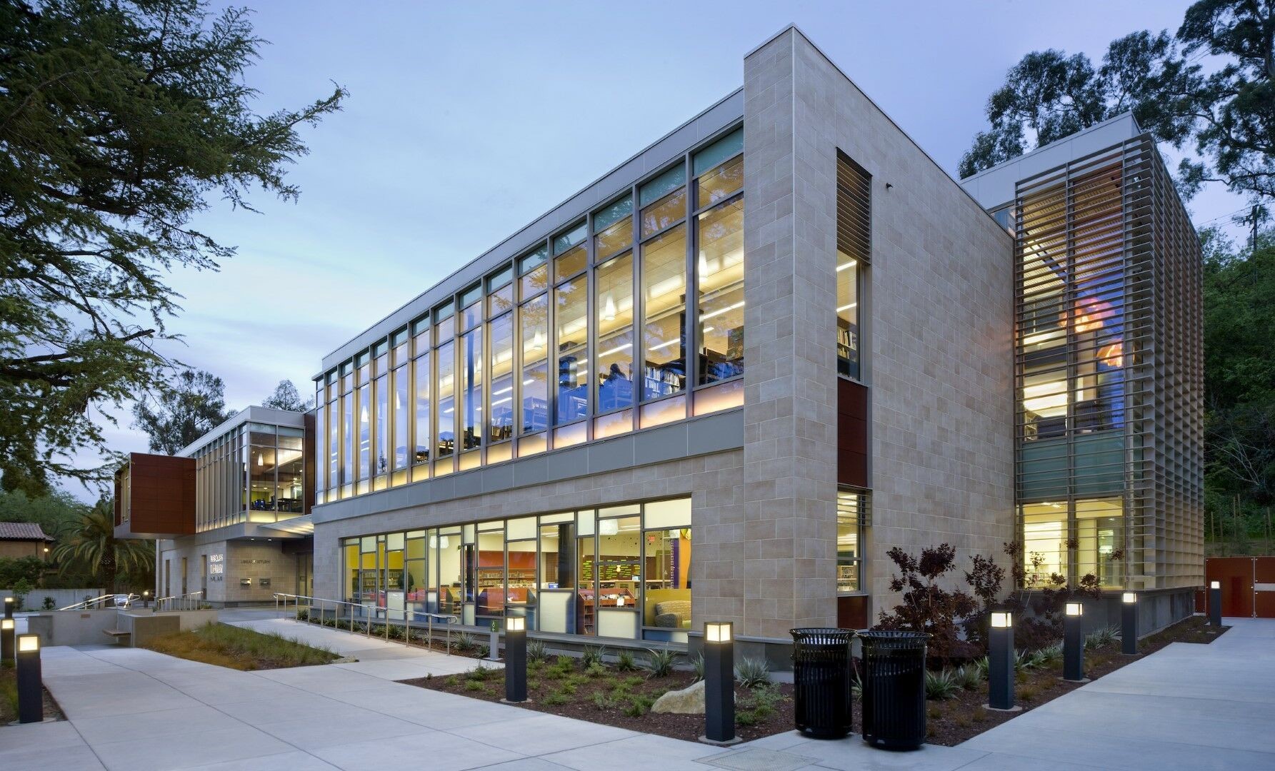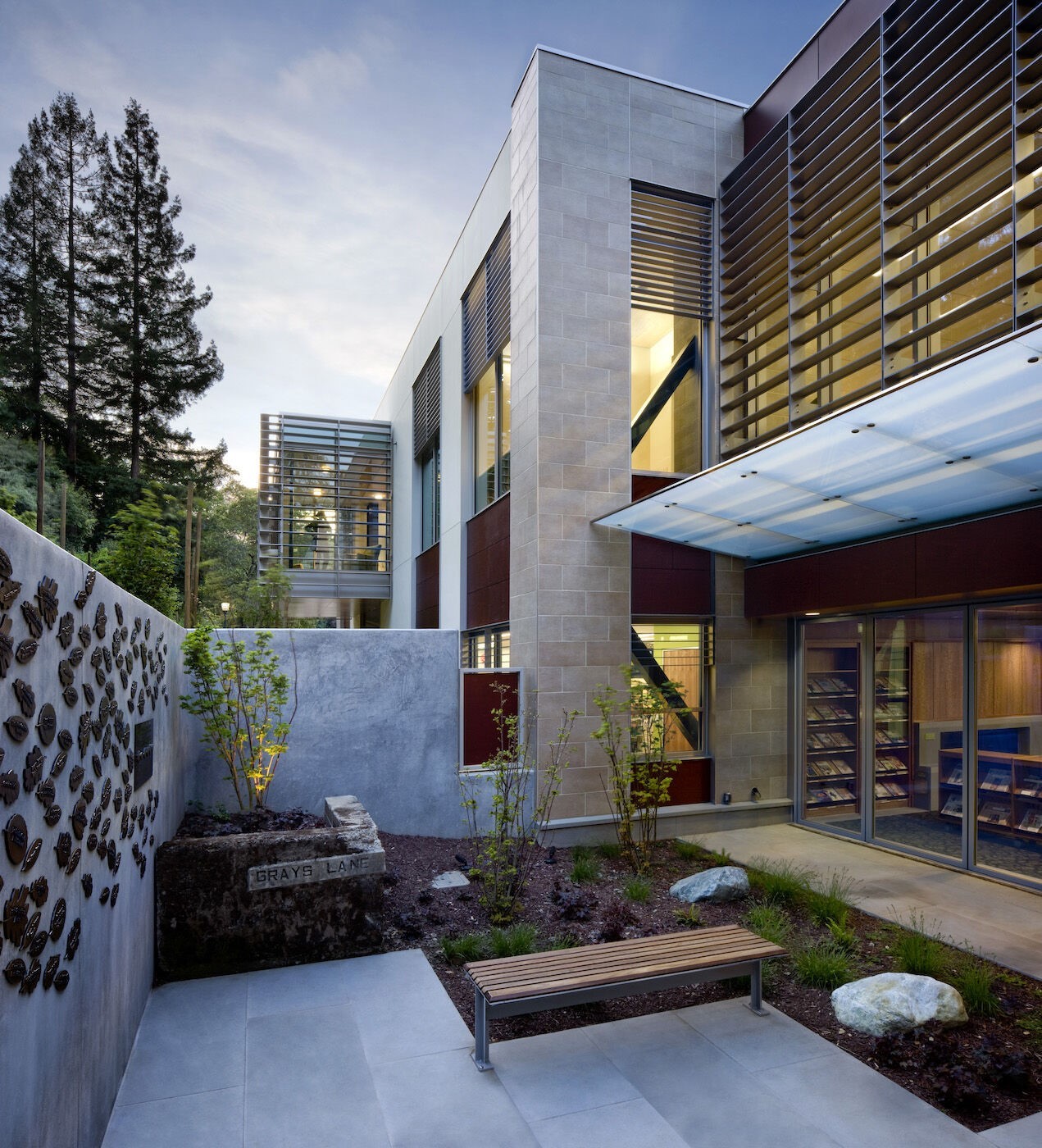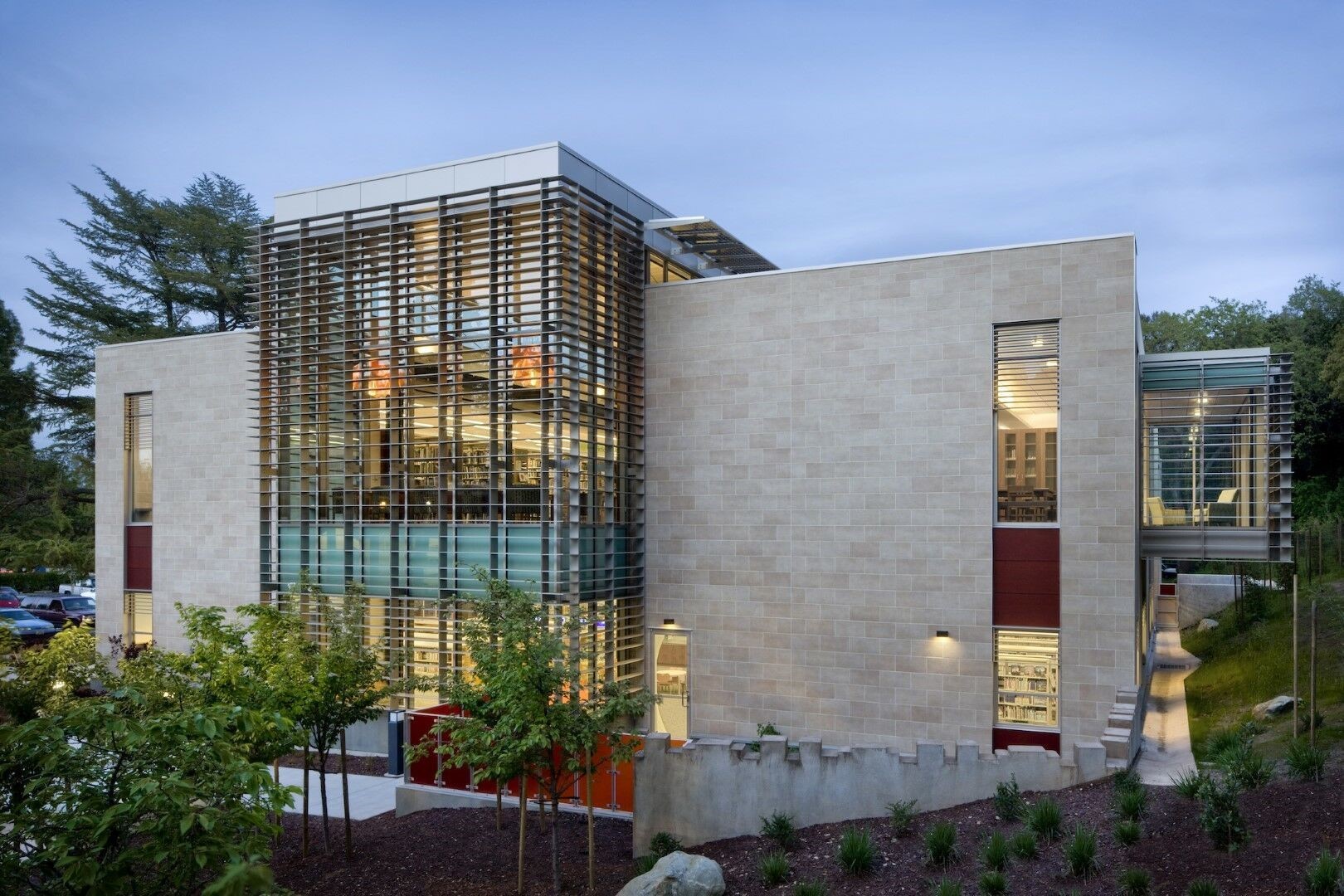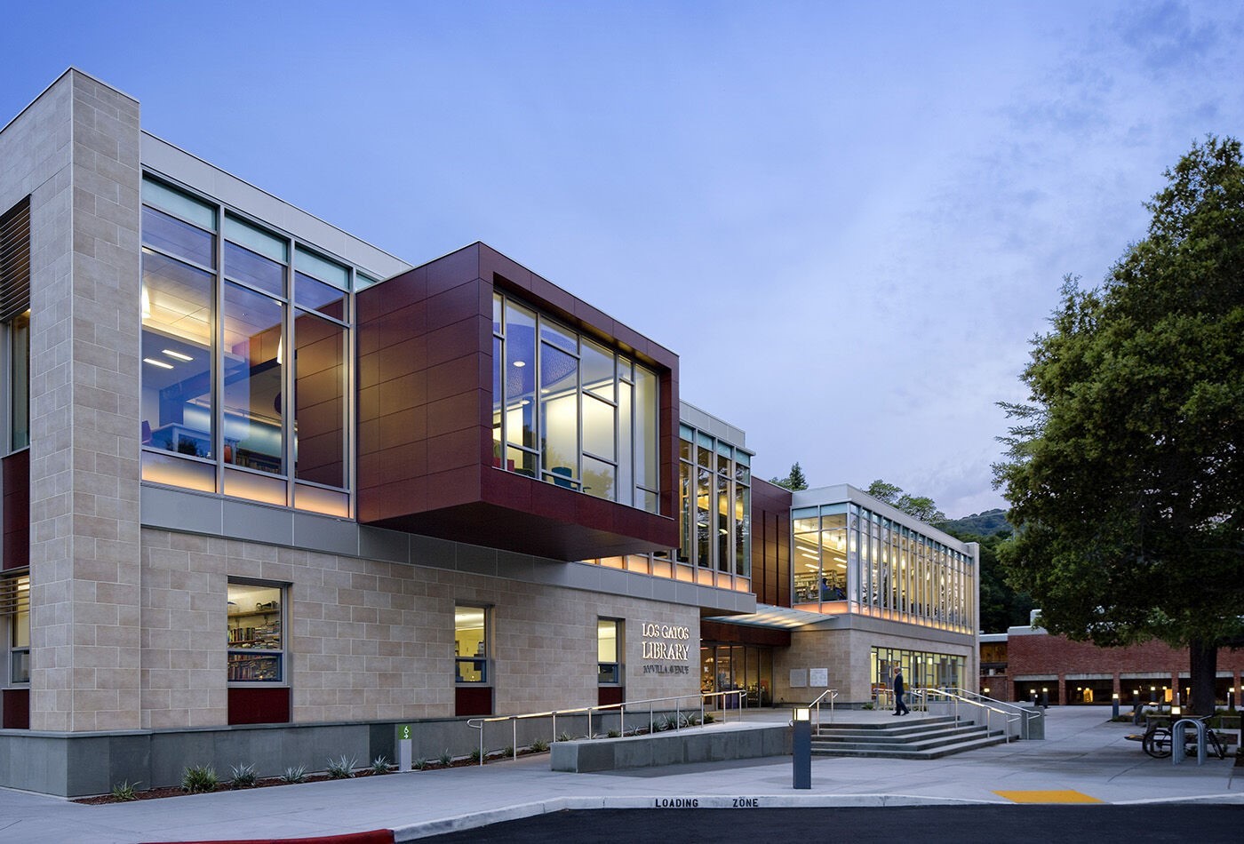 The LEED Gold® Los Gatos Public Library features Kawneer’s 1600UT System™1 Curtain Wall, GLASSvent® Windows for Curtain Wall, Versoleil® SunShade – Single Blade System – for Curtain Wall, Trifab® VersaGlaze® 451/451T Framing System and 190 Narrow Stile Entrances. Kawneer worked closely with architects to design a custom solar shading system that perfectly balances visible light and daylight shade. Lighting was an essential element of the design, as the concept was based on libraries being the light of knowledge.