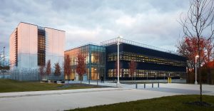 The 54,000-square-foot NASA Aerospace Communications Facility (ACF) is a cutting-edge research center located at NASA’s Glenn Research Center in Cleveland, Ohio, that consolidates over 80 researchers from seven different buildings. This state-of-the-art facility aims to significantly enhance NASA’s capabilities in developing faster, higher-capacity communications for future space missions. Featuring 25 research laboratories, collaboration spaces, a large RF-shielded high bay area and rooftop and ground-based antenna fields, the cutting-edge facility is designed to advance research in radio frequency and optical communication technologies, which are crucial for NASA’s Artemis and Advanced Air Mobility missions.