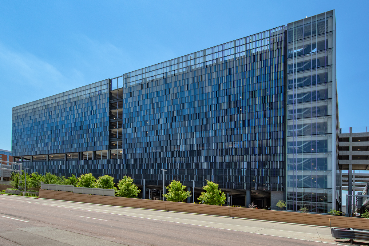 The Silver Ramp Transit Center Terminal 1 Lindbergh parking expansion at Minneapolis–St. Paul International Airport provides 5,000 parking spots and four stories dedicated to rental car companies allowing for short- and long-term expansion of rental car operations. Glass enclosed elevator shafts and strategic floor openings bring daylight into the underground passageways where connections are made to the people mover and LRT station. Lower-level spaces are flooded with natural daylight through Kawneer’s 2500 UT Unitwall® System and 1600UT Wall System®1 Curtain Wall. Additional systems used include 1600 Wall System®1 Curtain Wall, Trifab® VersaGlaze® 451 Framing System and 500 Standard Entrances. The systems provided a thermally efficient barrier between interior and exterior temperatures in the cool Minnesota climate. Kawneer Collaborative worked closely with the architects, customers and builders to help bring the project to life.