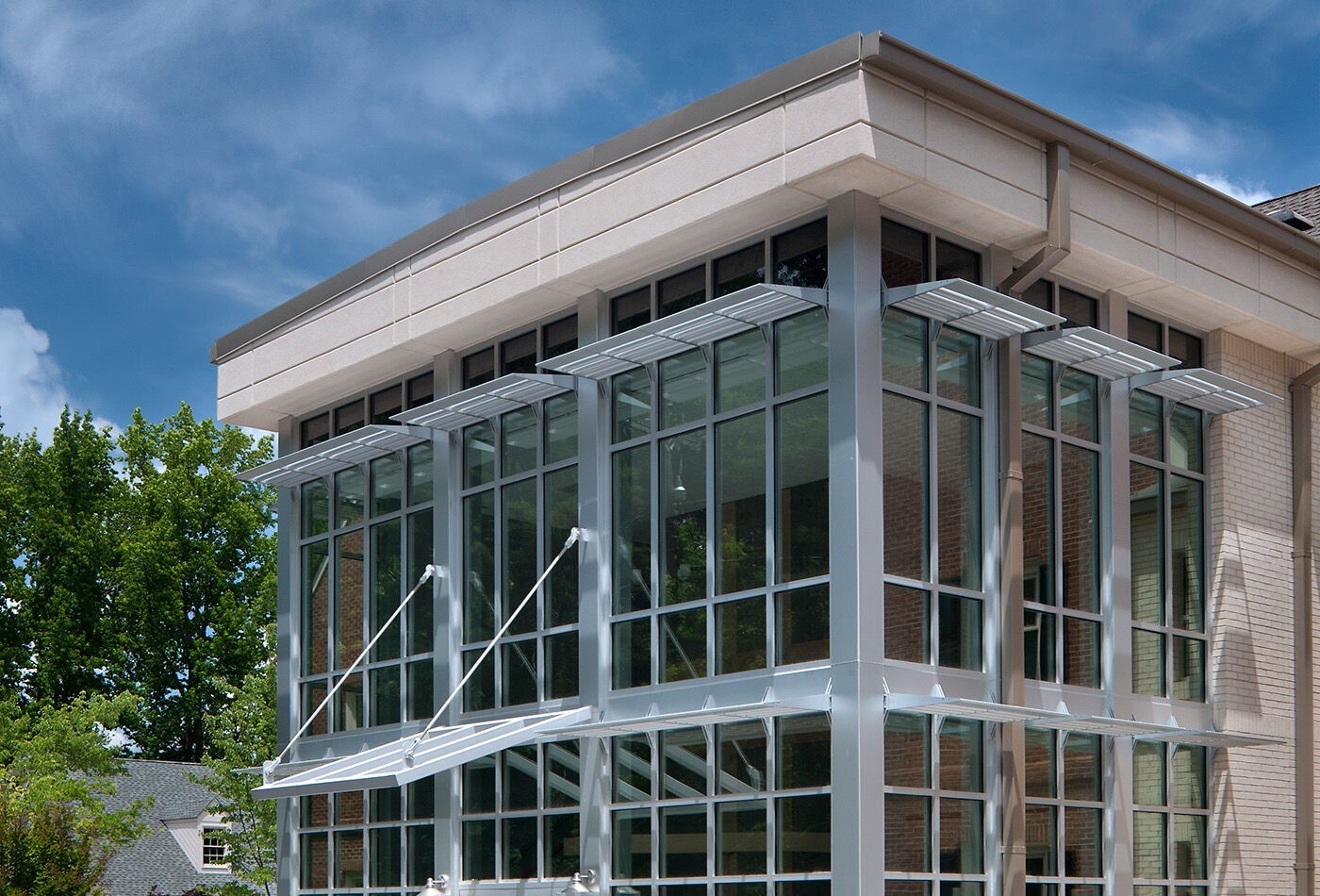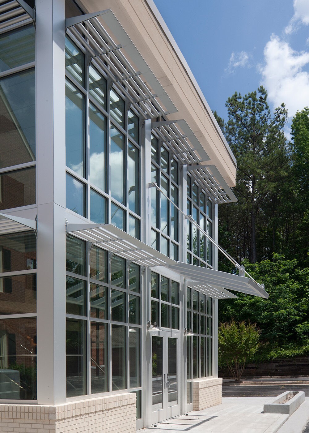 The Hope Clinic features Kawneer’s Trifab® VersaGlaze® 451/451T Framing System, Versoleil® SunShade – Outrigger System – for Storefront and 350/500 Heavy Wall™ Entrances.