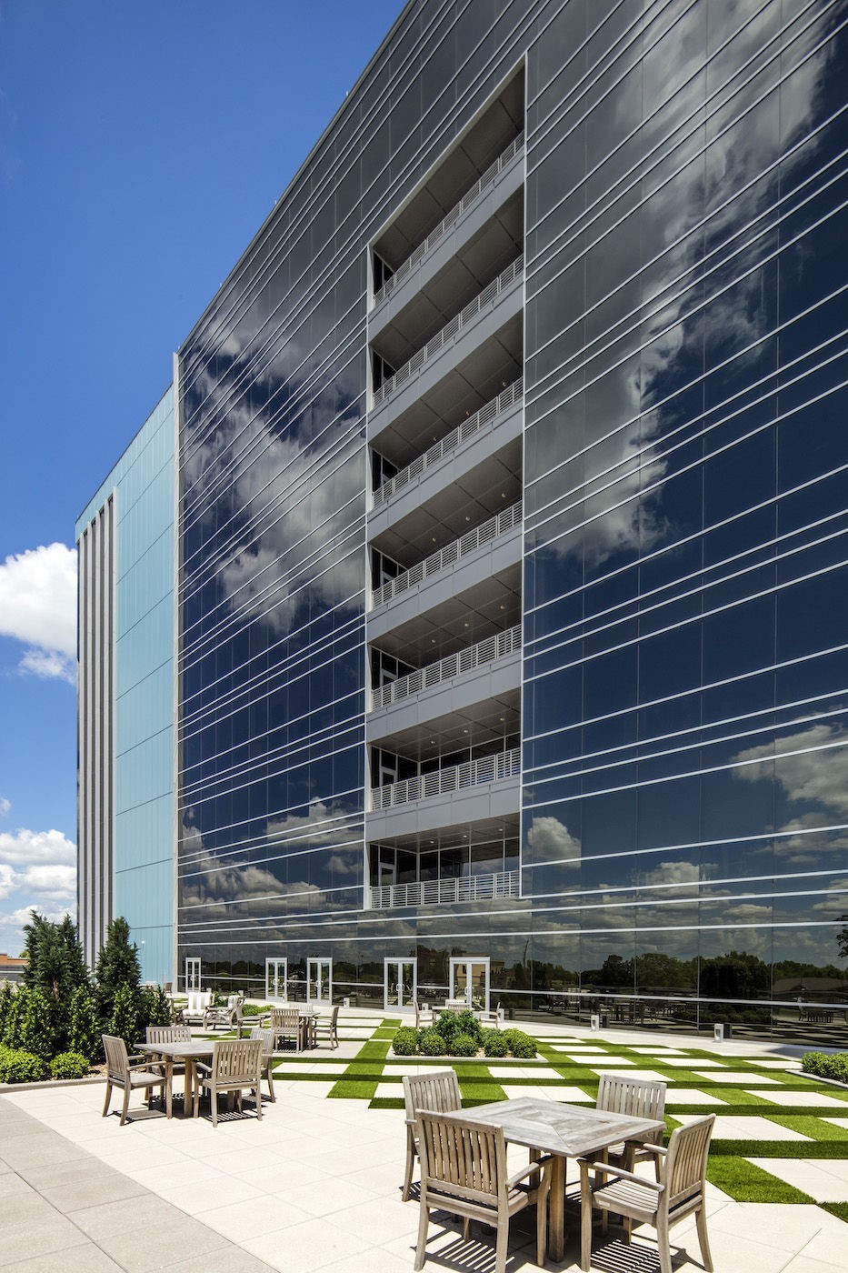 As the tallest building in Benton County, Arkansas, Hunt Tower stands high as a beacon of modern design and possibility. The contemporary building is LEED Silver® and promotes collaboration and creativity with open and light-filled workspaces. Hunt Tower features over 80,000 square feet of metallic finish curtain wall and advanced daylighting systems that provide thermal efficiencies and striking aesthetics and contribute to a productive, healthy and enjoyable work environment.