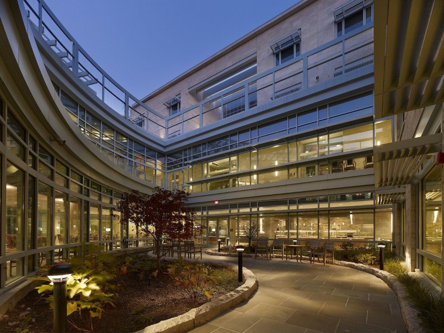 The challenge was to reflect the beautiful green surroundings of the AFRH campus, connecting the residents to nature while ensuring their comfort and safety. Kawneer curtain wall enables optimal views, while our thermal windows provide maximum safety and help maintain comfortable indoor temperatures while our durable entrances provide the quality to withstand heavy traffic in the reception area and lobby.