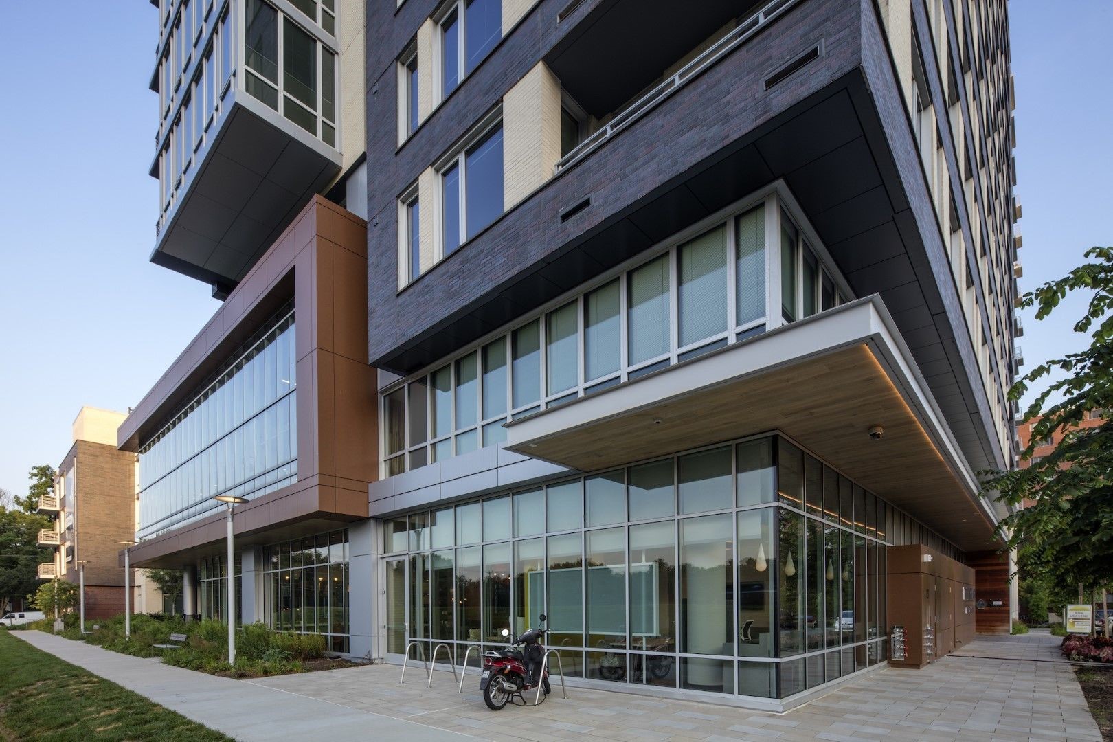 This complex multifamily design called for a mix of Kawneer products tailored to provide high thermal and structural performance for large floor-to-ceiling windows. By creating voluminous natural lighting and ventilation, The Pearl’s expansive windows, terrace doors and curtain wall systems enhance the bright and airy atmosphere with ample views of Rock Creek Park and the surrounding green spaces.