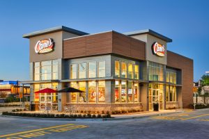 Kawneer’s National Accounts team helps deliver a consistent visual appearance for Raising Cane’s restaurant locations by providing a full-service offering, including product and finish consistency and design assistance throughout the entire process from ideation to completion.