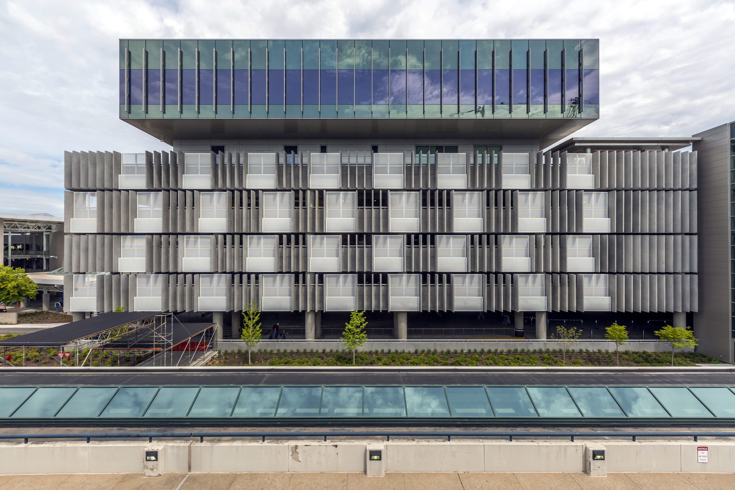 The Nashville International Airport (BNA) Terminal Garage C and Airport Administration Building were designed to foster connection and rest for travelers and airport staff. The construction included the removal of the existing garage and pedestrian walkway and the addition of a new parking garage, a 64,000-square-foot airport administration building and a plaza featuring outdoor seating, public art and more. Terminal Garage C and the airport administration building feature Kawneer’s 1600 Wall System®1 Curtain Wall, 2500 UT Unitwall® System, Versoleil® SunShades and Standard Entrances, as well as Kawneer’s Clearwall® Curtain Wall System on the interior of the administration building.